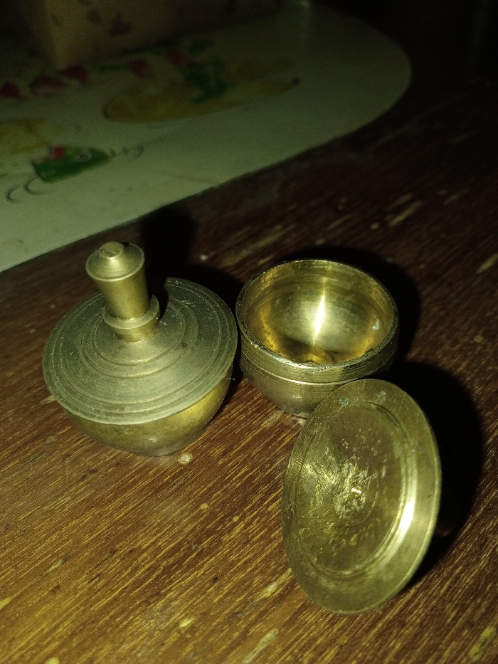 - "The scene depicts three individual brass items arranged on a dark, wooden surface in Longmiang, Laos" by FM-sU0PJ2, licensed under CC BY 4.0