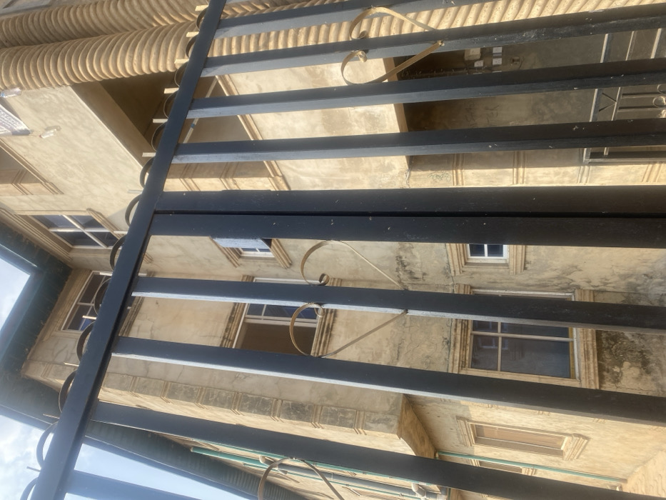 - "The image depicts a multi-story building located in Moniya, Nigeria, viewed upwards through the vertical bars of a black metal gate" by FM-BPBpZ2, licensed under CC BY 4.0
