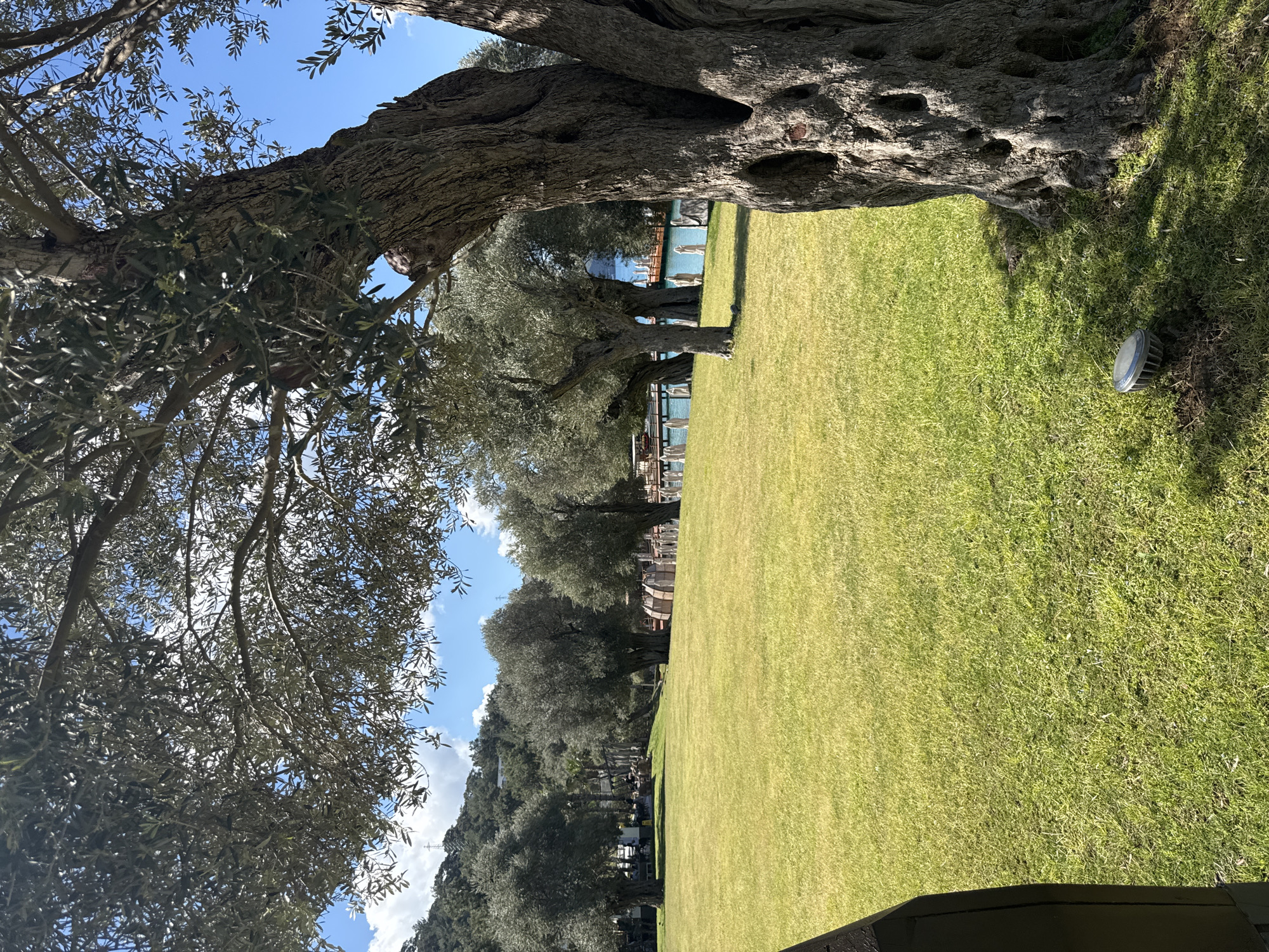 - "The image depicts a lush, green lawn flanked by mature olive trees under a blue sky in Bodrum, Turkey" by FM-2iTRQ2, licensed under CC BY 4.0