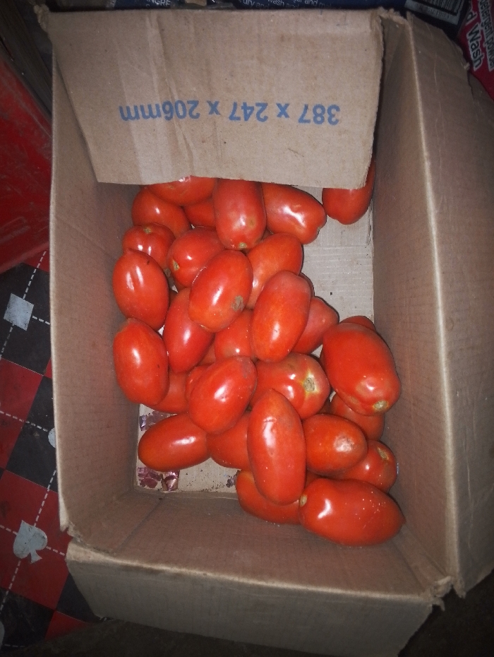 - "An open corrugated cardboard box, oriented vertically from the viewer's perspective, is densely filled with numerous ripe, red, plum-shaped tomatoes" by FM-jVkz32, licensed under CC BY 4.0