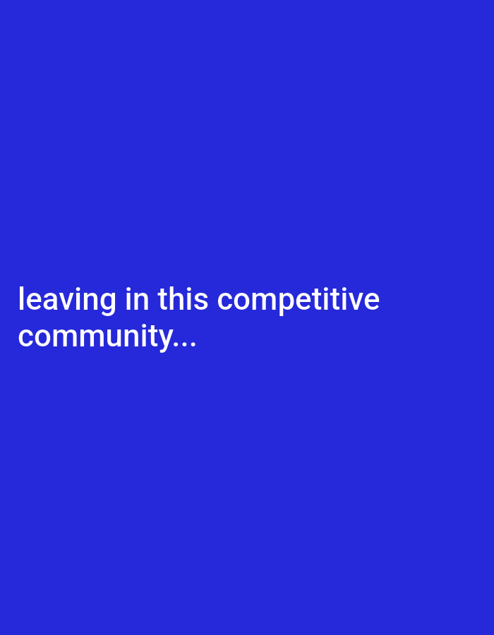 The image displays a uniform, solid blue background. White, sans-serif text is centrally aligned in the lower-left quadrant, stating: "leaving in this competitive community...". No individuals, physical objects, or actions are depicted within the frame. The environment is entirely graphical, with no identifiable real-world setting. The image provides no visual information to determine a specific geographical location, including Ang'urai East ward, Kenya.