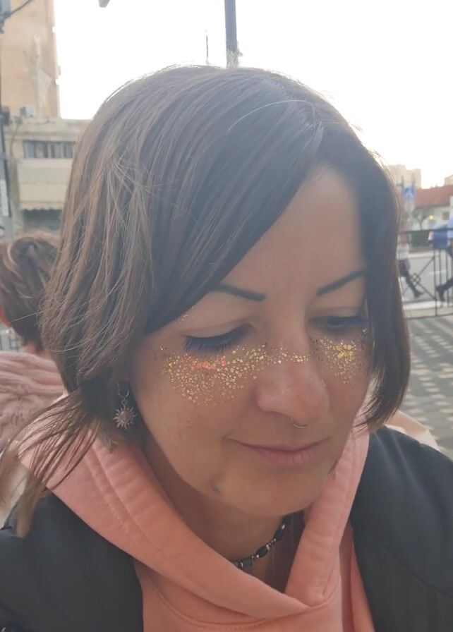 - "A woman with glittery makeup around her eyes takes a bite of food from a spoon" by FM-1TRqb2, licensed under CC BY 4.0