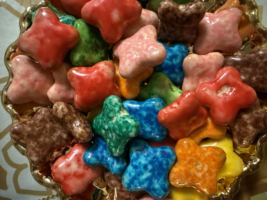 - "A close-up shows a pile of colorful, glazed, four-pointed star-shaped cookies" by FM-7p9nD3, licensed under CC BY 4.0