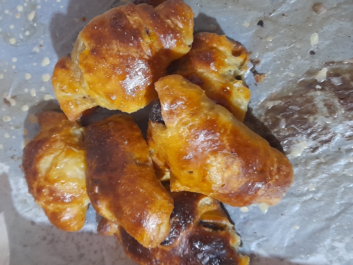 - "Several golden-brown, crescent-shaped pastries fill the frame" by FM-VWBni2, licensed under CC BY 4.0