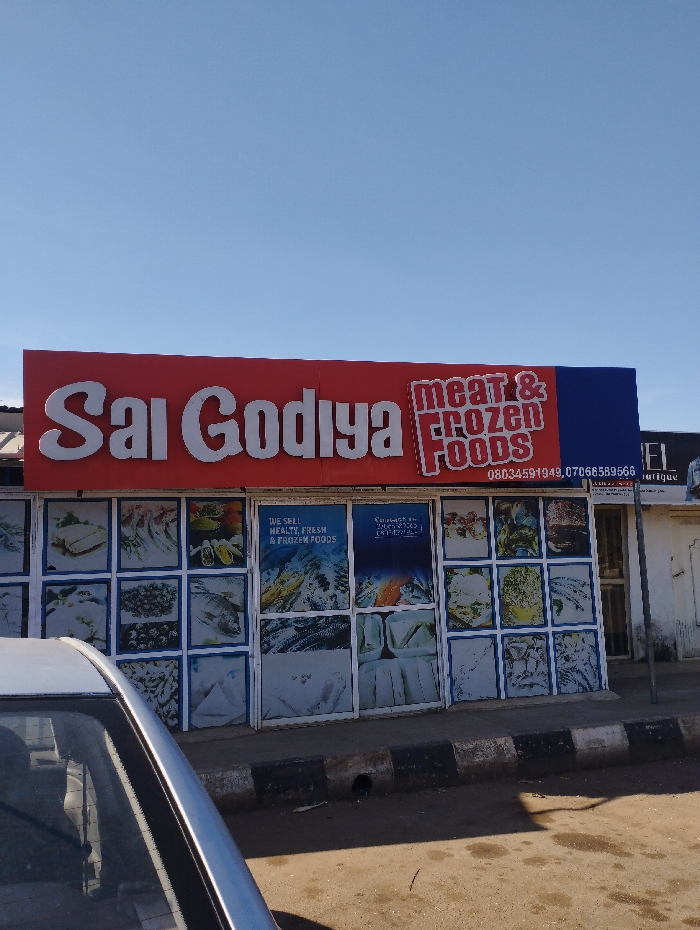 - "The image displays the storefront of "Sai Godiya Meat & Frozen Foods" in Gura Top, Nigeria, under a clear, bright blue sky during daytime" by FM-zRozC3, licensed under CC BY 4.0