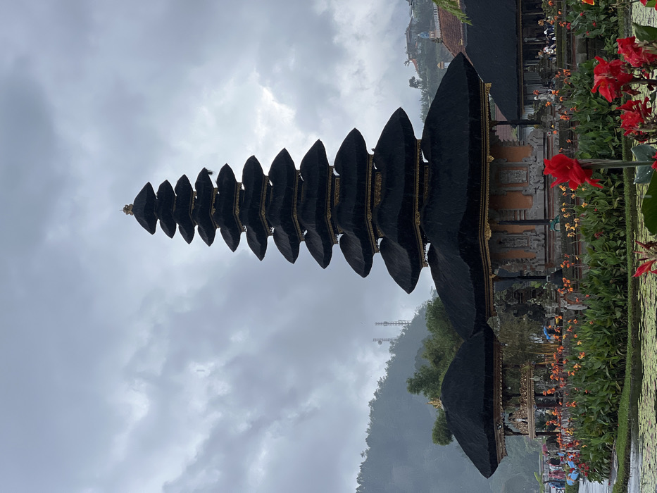 - "A multi-tiered Balinese temple stands reflected in still water beneath a cloudy sky" by FM-xgQP92, licensed under CC BY 4.0
