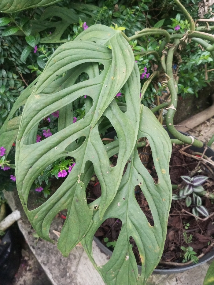 - "The image displays a close-up, vertical outdoor shot of a *Monstera adansonii* plant, commonly known as a Swiss cheese plant, located in Tecuci, Romania" by FM-U3GeU2, licensed under CC BY 4.0