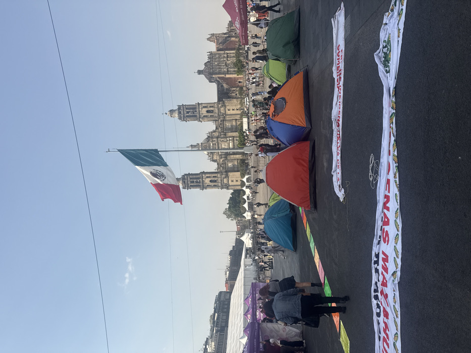 - "The image displays an outdoor scene at the Zócalo (Plaza de la Constitución) in Mexico City, Mexico, under a clear blue sky" by FM-nKu5C3, licensed under CC BY 4.0