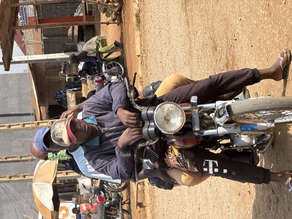 - "A daylight street scene in Ikorodu, Nigeria, depicts two dark-skinned males on a stationary motorcycle on a reddish-brown dirt road" by FM-ddIDX2, licensed under CC BY 4.0