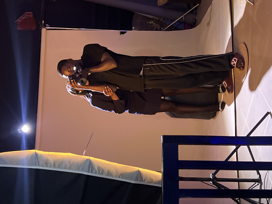 The scene depicts an indoor photography setup in Jos, Nigeria