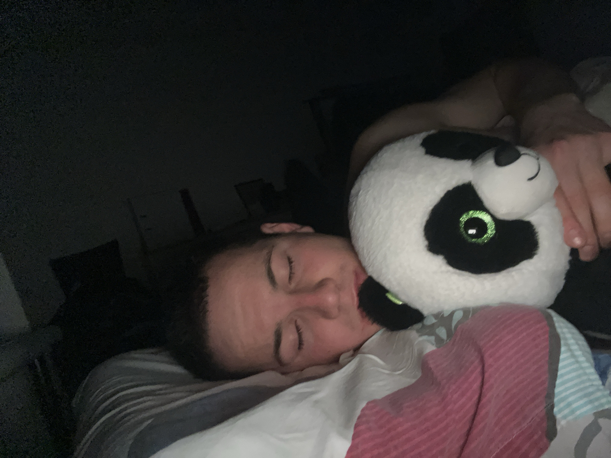 - "A person is asleep in bed, hugging a plush panda toy" by FM-OU72f2, licensed under CC BY 4.0
