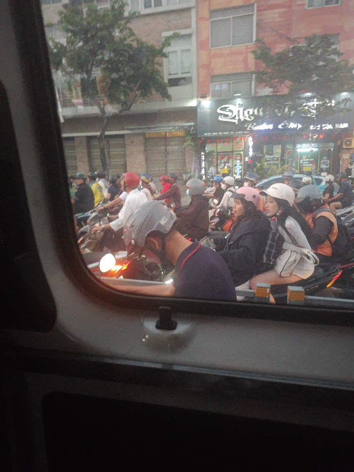 - "The image, captured from inside a vehicle, presents a detailed view of a congested urban street scene at dusk or early evening" by FM-CuMMb2, licensed under CC BY 4.0
