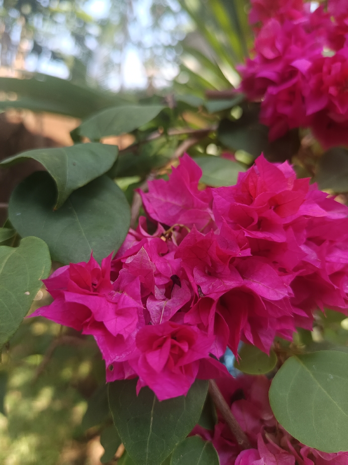 - "A close-up photograph displays a dense cluster of fuchsia-pink bougainvillea flowers, characterized by their papery bracts, prominently in the central and lower right frame" by FM-WRTkH2, licensed under CC BY 4.0
