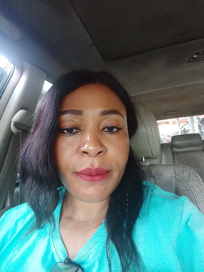 The image displays an adult female seated within a vehicle in Dadi Riba, Nigeria