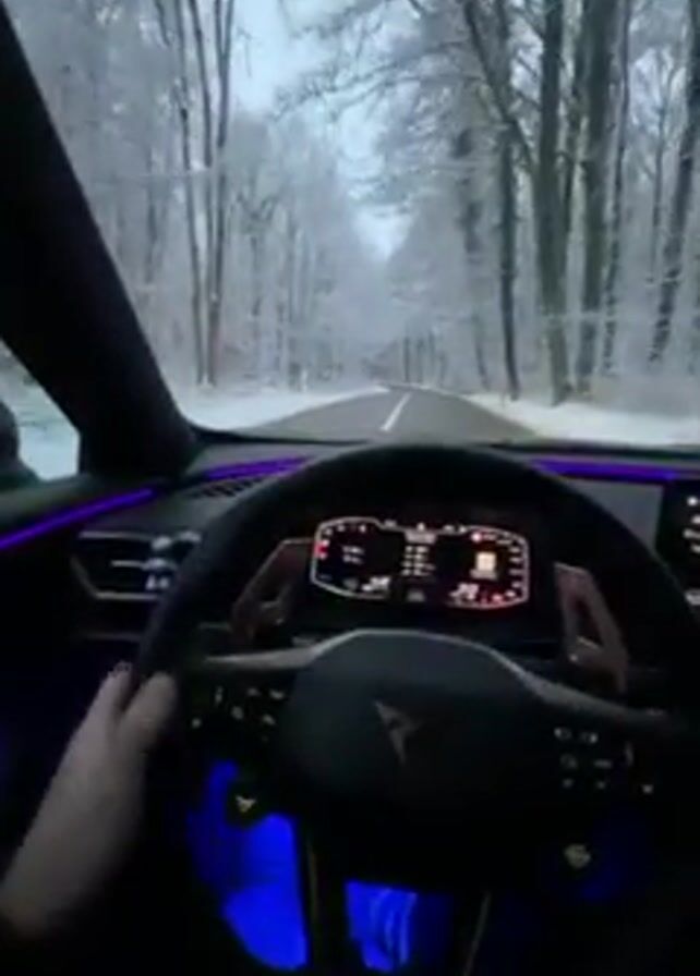 - "A first-person perspective video shows a driver behind the wheel of a car, driving on a road through a snowy forest" by FM-ayK6f1, licensed under CC BY 4.0