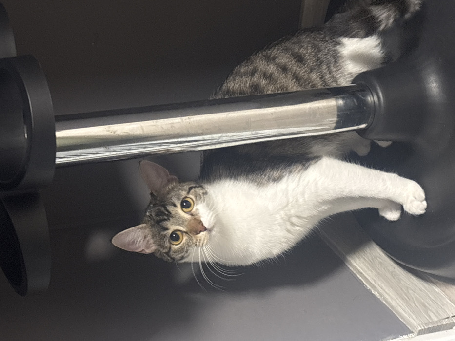 - "An indoor scene in Radomir, Bulgaria, depicts a domestic shorthair cat with tabby markings and white fur" by FM-r8nDs2, licensed under CC BY 4.0