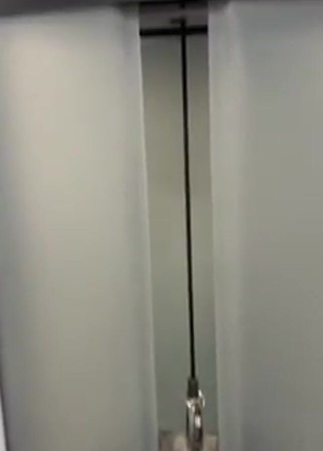 Hip Adductor machine. The camera pans from a diagram of the equipment to the weight stack. An arm with a red sleeve then comes into view at the base of the machine.