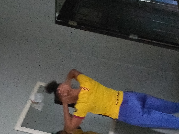 - "A person in a yellow shirt and blue leggings is doing a side plank on the floor" by FM-EoPh73, licensed under CC BY 4.0