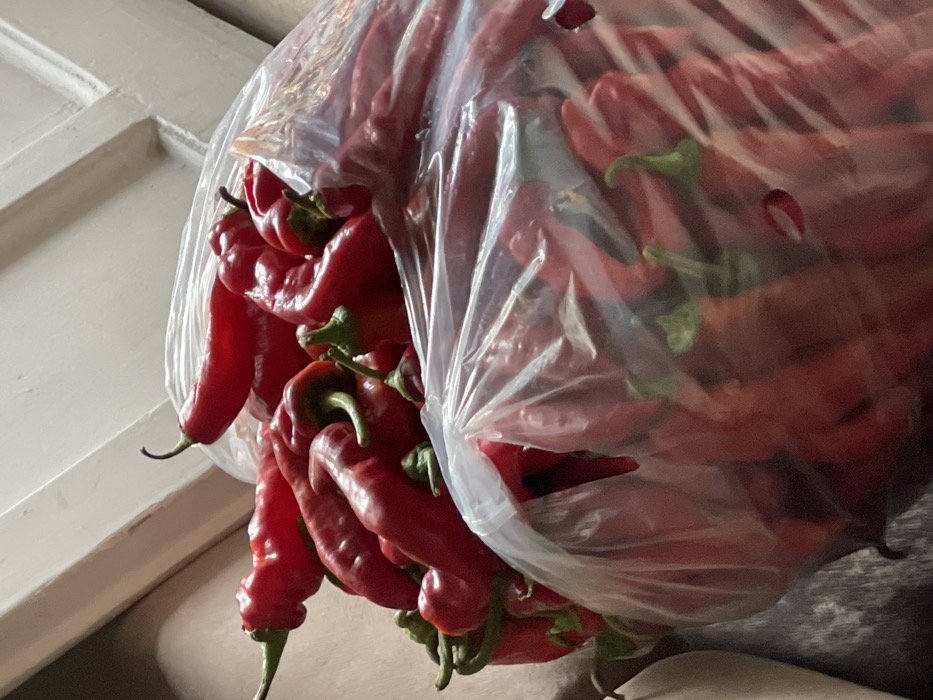 - "A clear plastic bag densely packed with red chili peppers is depicted at an unspecified indoor location within Al-Qanawat Municipality, Syria" by FM-qX7cx2, licensed under CC BY 4.0