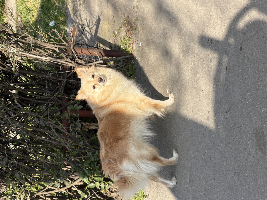 - "A medium-sized, light tan and cream-colored dog with shaggy fur stands on an asphalt surface in the city of Plovdiv, Bulgaria" by FM-FV8om1, licensed under CC BY 4.0