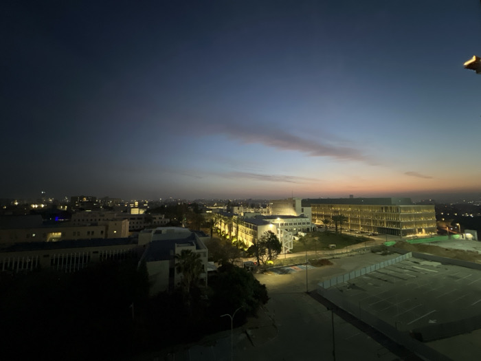 - "An elevated panoramic image captures a cityscape under twilight conditions, likely dawn or dusk, located in central Tel-Aviv, Israel, specifically depicting the area of the Sourasky Medical Center (Ichilov Hospital) campus" by FM-D3TiK2, licensed under CC BY 4.0
