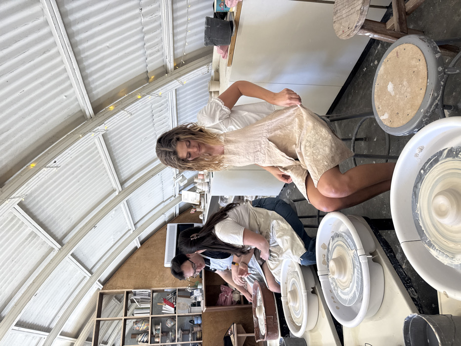 The image depicts an indoor pottery studio located in Malibu, United States of America