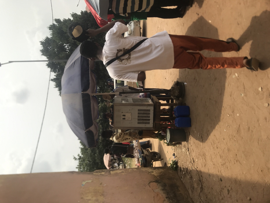 The scene depicts an outdoor market area in Ihiagwa, Nigeria, under an overcast sky