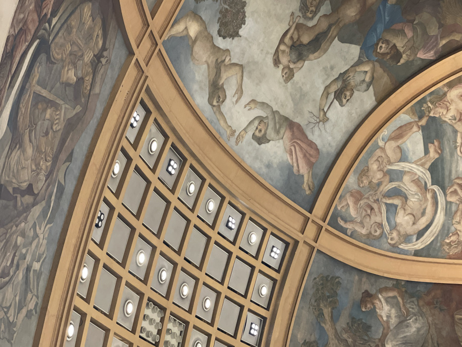 - "The image displays an upward-angled view of an ornate, curved interior ceiling, identifiable as part of the Palacio de la Legislatura de la Ciudad de Buenos Aires, Argentina" by FM-Qe7Fd2, licensed under CC BY 4.0