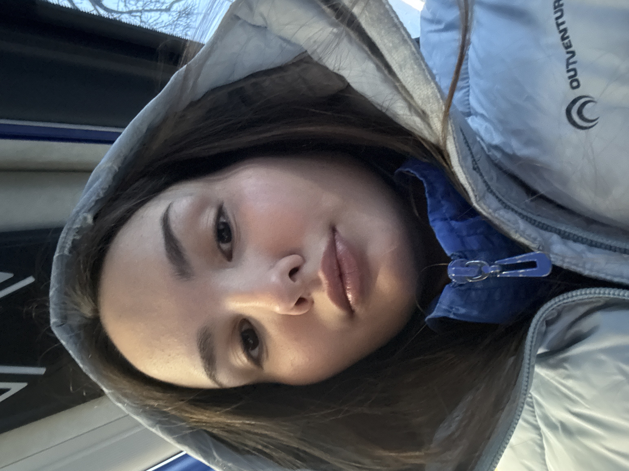 - "A close-up selfie depicts a young female looking directly at the camera, wearing a light grey-blue puffer jacket with the hood up" by FM-Zp3et1, licensed under CC BY 4.0