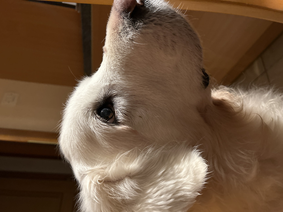 - "The image displays a forensic close-up, profile view of a light-cream or golden-furred dog, likely a Golden Retriever, positioned facing towards the right" by FM-dAK2v2, licensed under CC BY 4.0