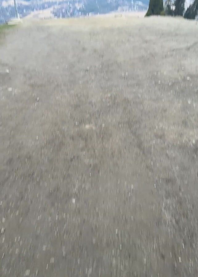 The video starts with a ground-level view of a dirt surface, and as the camera angle increases, a scenic landscape emerges