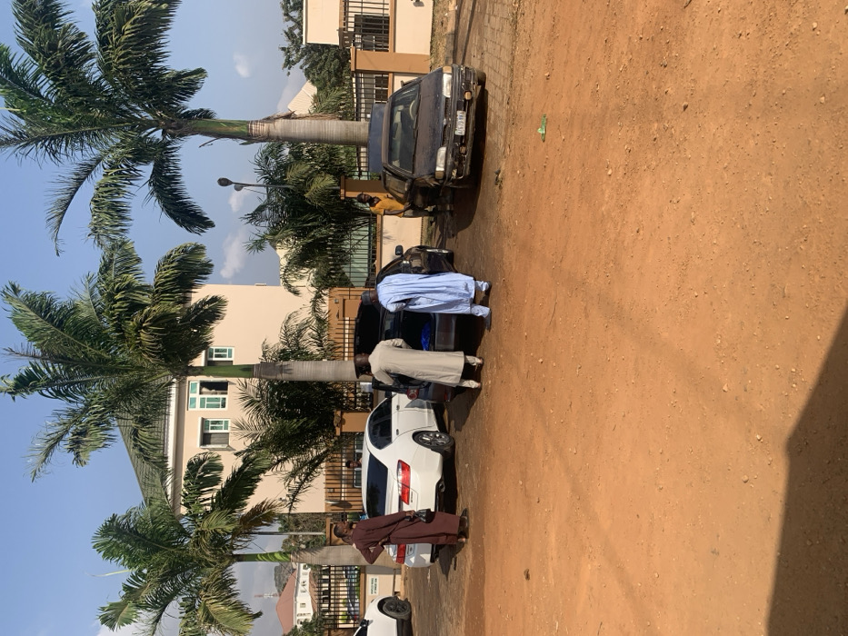 This image captures an outdoor scene in Okene, Nigeria, during daylight hours under a clear sky with scattered clouds