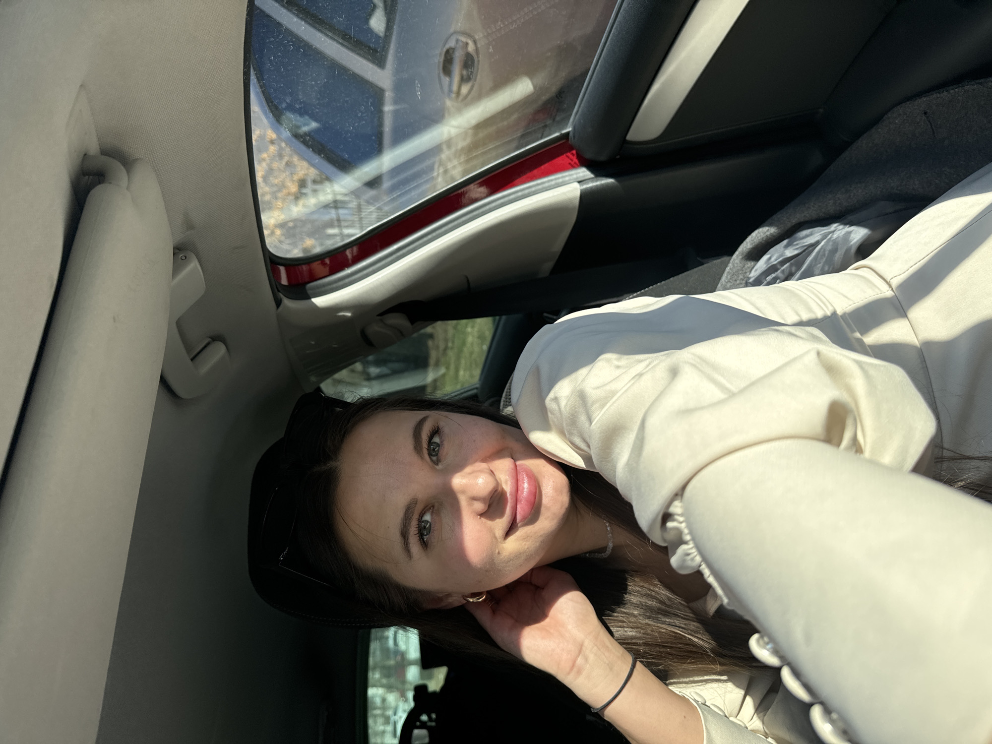 A woman is inside a car