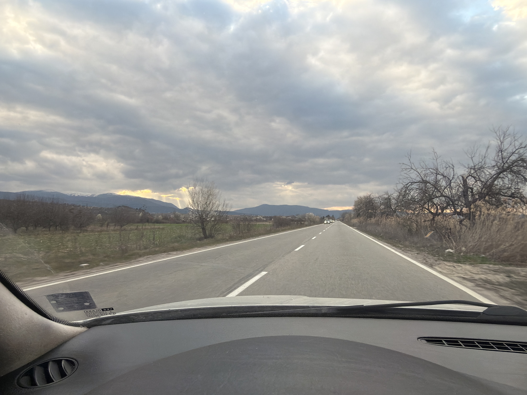 - "The scene depicts a straight, two-lane asphalt road viewed from inside a vehicle in Novi Chiflik, Bulgaria" by FM-DkMGR2, licensed under CC BY 4.0