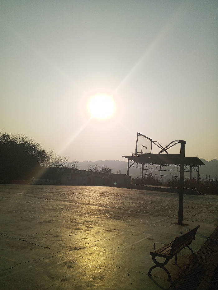 - "This image depicts an outdoor concrete basketball court located in Jiangjin, China, under a bright sun positioned in the upper-left quadrant of the frame, emitting a pronounced starburst effect" by FM-oJvmO2, licensed under CC BY 4.0