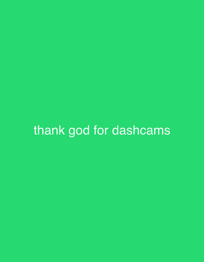 - "The image displays a vibrant green background with the text "thank god for dashcams" centered horizontally and positioned in the lower portion of the frame" by FM-mfRp53, licensed under CC BY 4.0