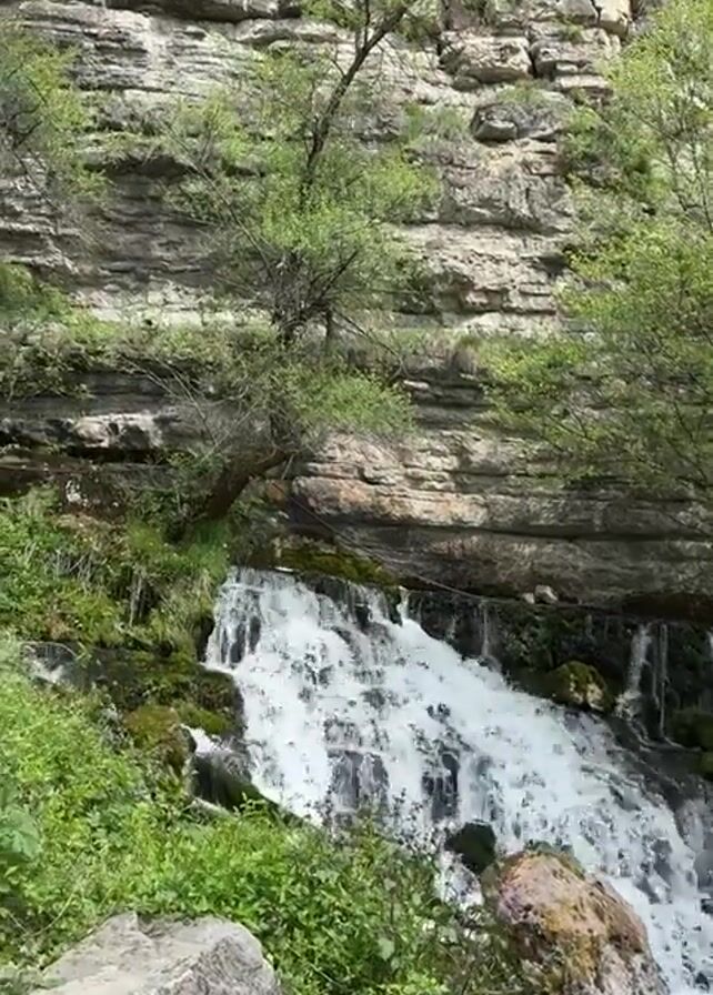 small waterfall cascading down a rocky cliff face