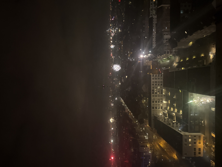 - "An aerial view captures a cityscape at night, with fireworks illuminating the sky and reflecting off building surfaces" by FM-xKTK43, licensed under CC BY 4.0
