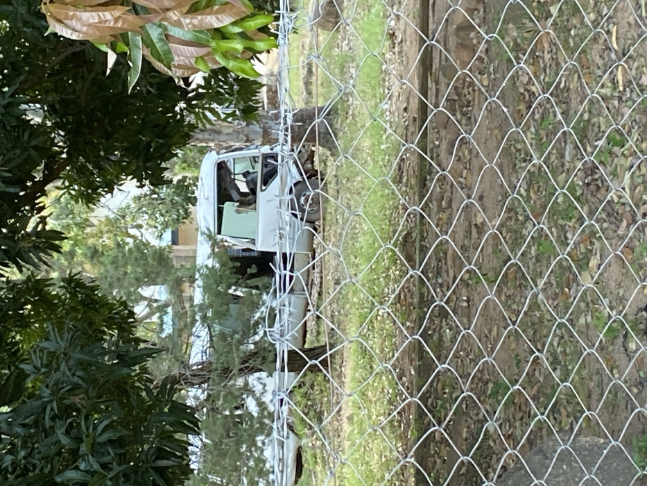 - "A heavily damaged, white light-commercial vehicle, possibly a minivan or small bus, is observed partially obscured by dense foliage and a chain-link fence in the city of Gwong, Nigeria" by FM-BltKA2, licensed under CC BY 4.0