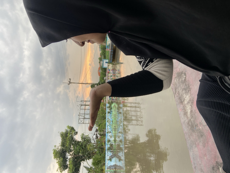 - "An individual, identified as female, is situated in Kalitengah, Indonesia, near a waterway during twilight hours, indicated by the orange-yellow glow on the horizon under an overcast sky" by FM-htxI33, licensed under CC BY 4.0