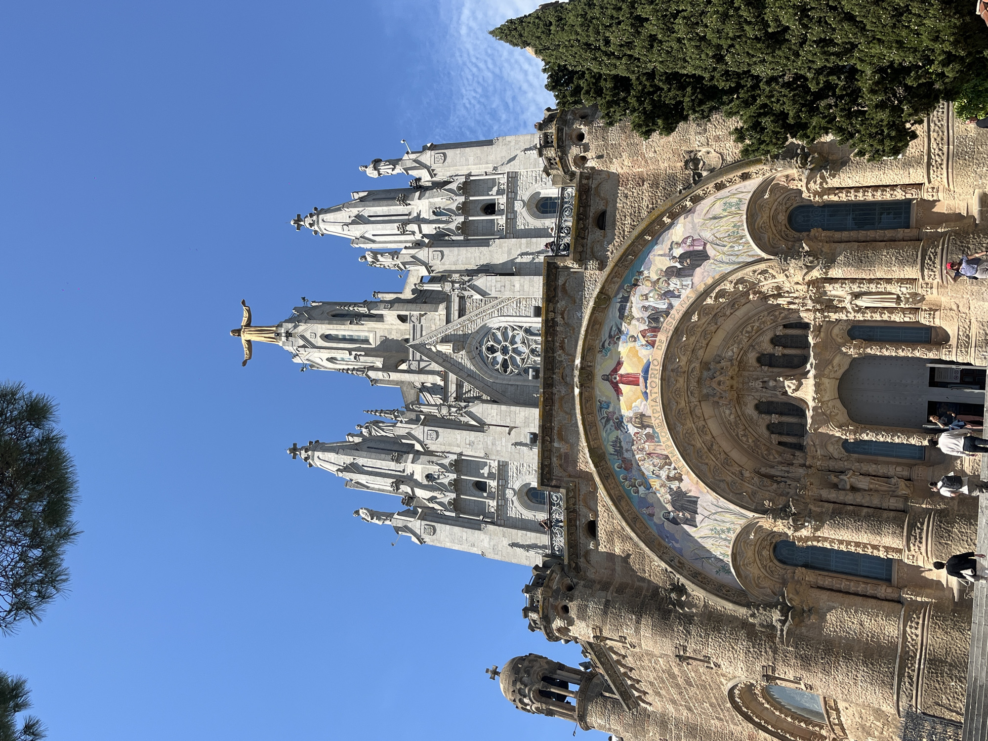 The image depicts the Sagrat Cor church in Barcelona, Spain
