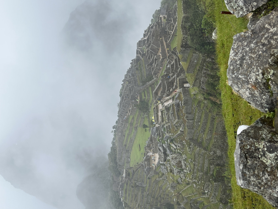 - "Machu Picchu's ruins cling to a steep, verdant hillside shrouded in mist" by FM-mJ54K2, licensed under CC BY 4.0