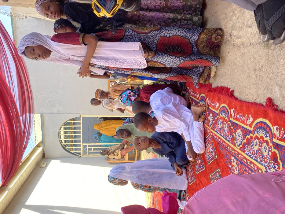An outdoor gathering in Kwarbai A, Nigeria, is depicted under bright daylight