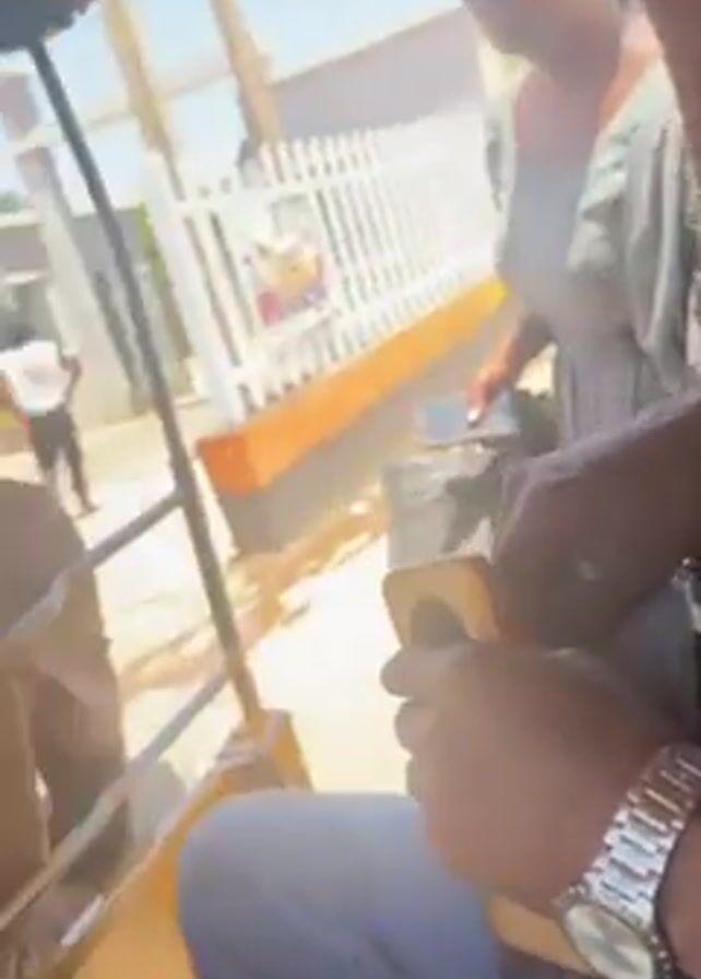 ride in a yellow auto rickshaw, or tuk-tuk, with three passengers. One passenger in the front is looking at their phone and appears to be going through a purse or bag. Another passenger in the front is looking forward, and a third passenger is in the back. The tuk-tuk drives past buildings and people.