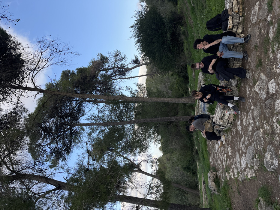 - "The image depicts an outdoor scene in the Megido Regional Council, Israel, featuring five individuals seated on a low stone wall next to a stone-paved path" by FM-8YKLB2, licensed under CC BY 4.0