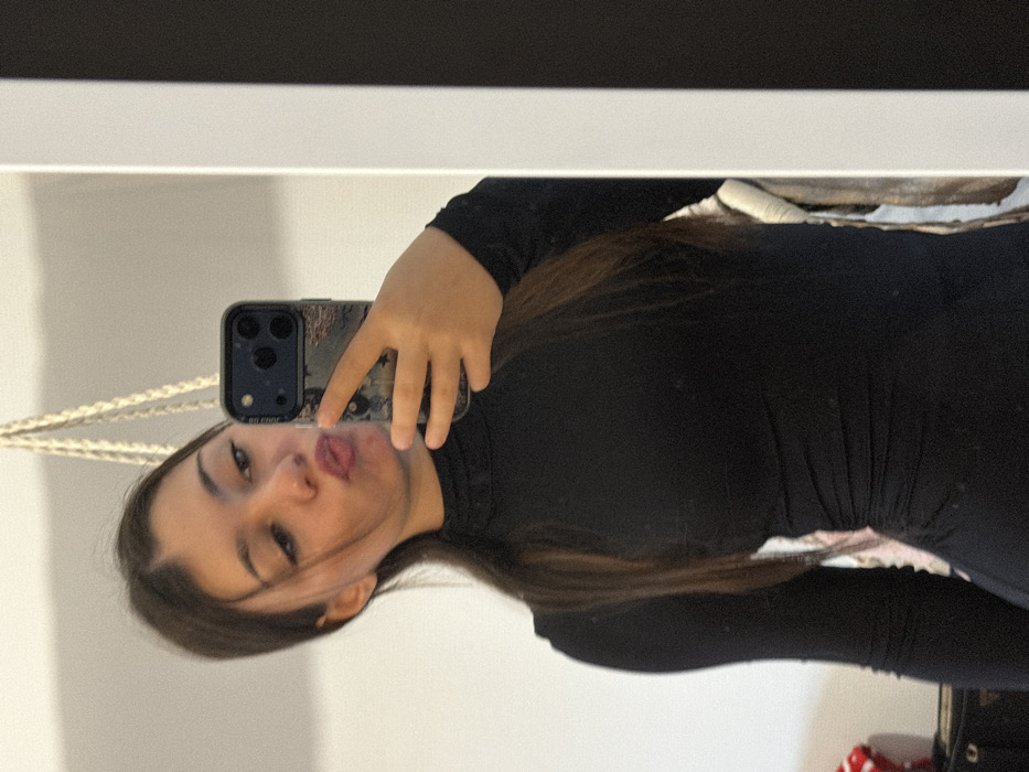 A young female is depicted indoors in Bouxwiller, France, taking a mirror selfie