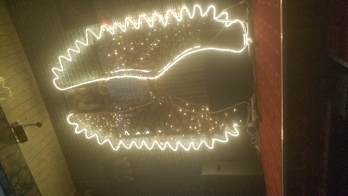 - "The scene, located indoors in Bar Jirgi Summa, Nigeria, depicts a dimly lit room featuring a large, illuminated winged display on a raised platform" by FM-rFkQ43, licensed under CC BY 4.0