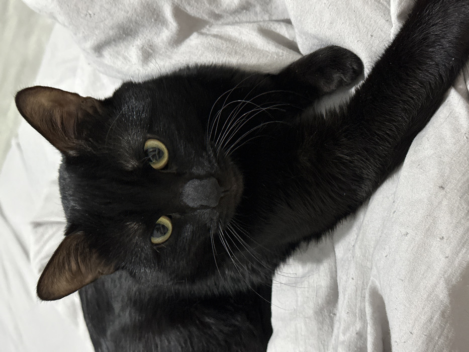 - "A black cat rests on white fabric" by FM-sRkws2, licensed under CC BY 4.0