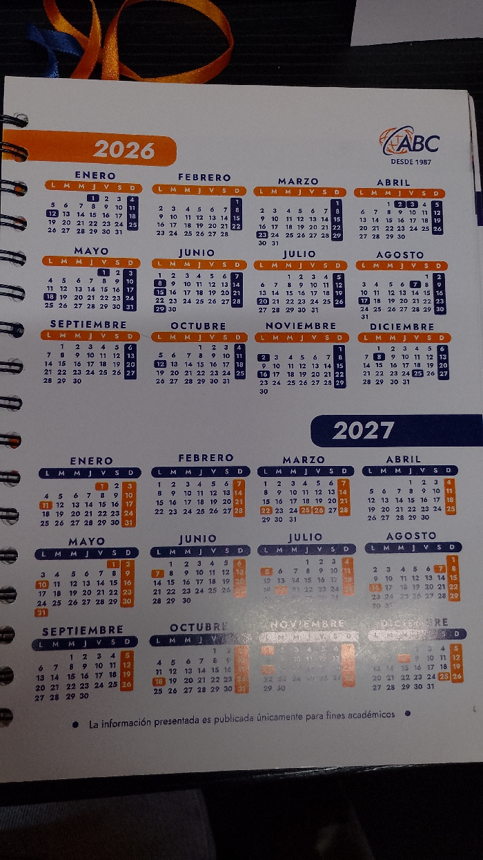 - "An overhead, slightly angled photograph depicts an open spiral-bound calendar or planner page resting on a dark, textured surface in Perímetro Urbano Barranquilla, Colombia" by FM-aKaU63, licensed under CC BY 4.0