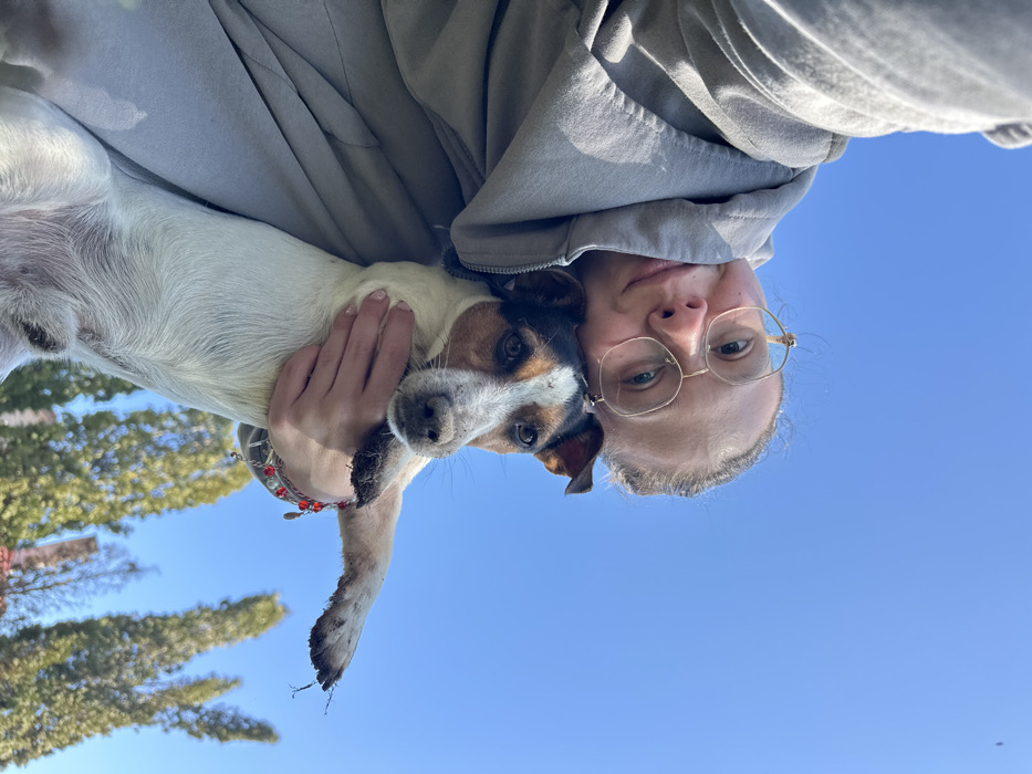 - "A low-angle selfie captures a female subject holding a dog outdoors under a clear blue sky in the city of Oryahovo, Bulgaria" by FM-bhLLK2, licensed under CC BY 4.0